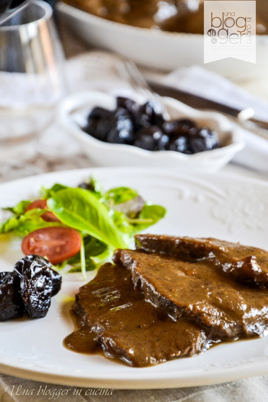 oggi vi parlerò di un taglio di bovino considerato di seconda categoria, ma non per questo meno buono o tenero: la gallinella. Sebbene sia un taglio del quarto posteriore situato nella parte inferiore della gamba del bovino, la gallinella, chiamata in alcune zone anche pesce (Lombardia) o anche callo del campanello (Toscana) o muscolo posteriore (Liguria), è un taglio molto apprezzato per arrosti, umidi e spezzatini. Cotta intera e ben legata con lo spago per mantenerla compatta, presenta una carne molto tenera e succosa grazie anche al fondo di cottura particolarmente cremoso preparato con prugne secche e vino rosso.