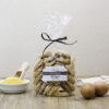 Ingredienti: FARINA 0 aziendale 55%, FARINA NOCCIOLE piemonte, BURRO, zucchero, sale, vanillina, aromi naturali, cioccolato, (ingredienti: zucchero, grassi vegetali, cacao magro, burro di cacao, LATTOSIO, emulsionante, lecitina, aromi). Può contenere tracce di frutta a guscio.