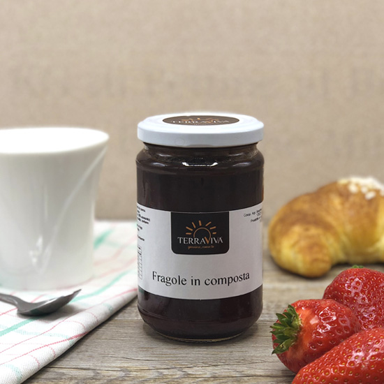 L'allegria e la freschezza della composta di fragole, dolce e delicata. Fragole lavorate a cottura lenta secondo una ricetta tradizionale con basso contenuto di zucchero (max 30% aggiunto).