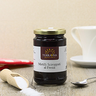 Ingredienti: Mirtilli 65%, zucchero, acqua, vino Freisa 1,4%, correttore di acidità: acido lattico.