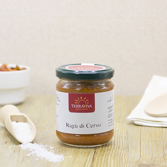 Ragù di Cervo: un condimento dal carattere deciso e autentico, prodotto solo le migliori carni frutto di alimentazioni naturali. Per gli amanti del sapore forte della selvaggina, consigliamo di utilizzarlo per condire una polenta fresca o in accompagnamento ai funghi grigliati.