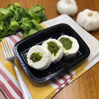 Ingredienti: tomini (LATTE, caglio, sale) 50%, olio di semi di girasole, salsa verde 25% (olio di semi di girasole, prezzemolo, aceto di vino bianco (contiene SOLFITI), pangrattato (Farina di GRANO tenero tipo “00”, sale, lievito), filetti di ACCIUGHE (Engraulis encrasicolus), capperi (capperi, sale), aglio, zucchero, conservante: acido lattico, antiossidante: ascorbato di sodio, conservante: acido sorbico, pepe)..