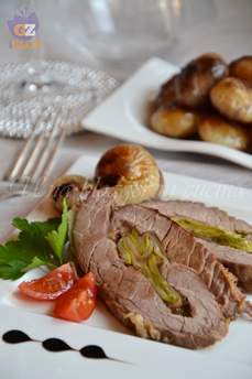 Poi, continuare la cottura aggiungendo del brodo vegetale bollente. Cuocere per circa 60-70 minuti, coperto e a fuoco basso. Rigirare ogni tanto la carne e bagnarla con il suo fondo. Al termine della cottura, estratte la carne dall’arrostiera e lasciarla raffreddare a temperatura ambiente. Poi, rimuovere lo spago da cucina e affettarla da fredda, perché le fette non si rompano.