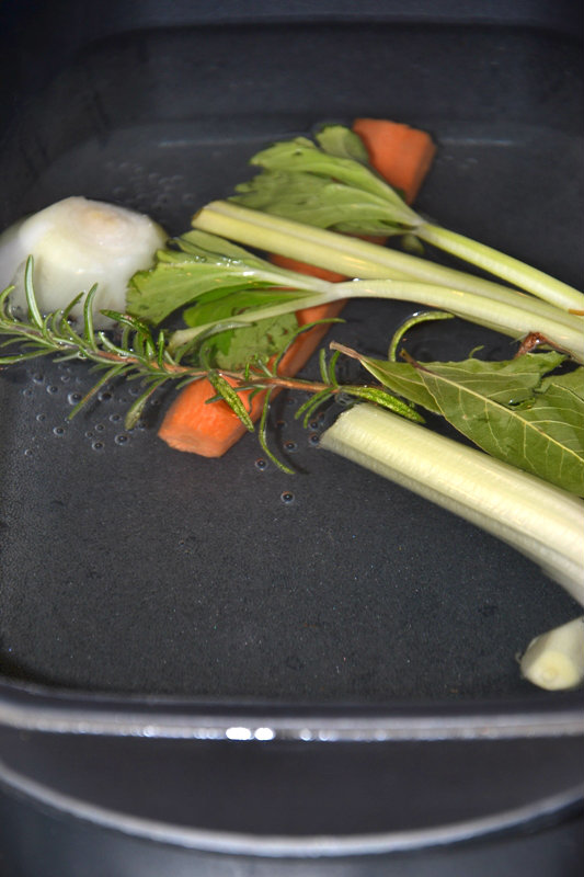 Per ottenere un Vitello tonnato gustoso e tenero, portare a bollore abbondante acqua in un tegame alto e stretto che possa contenere alla perfezione la carne e che permetta di coprirla interamente con l’acqua.
