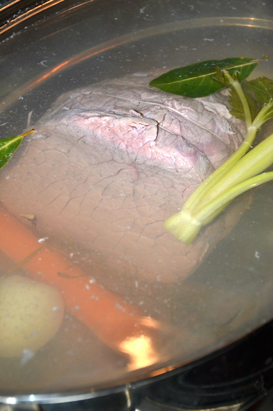 A cottura terminata, lasciare raffreddare la carne all’interno del suo brodo di cottura, per circa 3-4 ore. Scolare la carne, eliminare lo spago da cucina e avvolgerla in un foglio d’alluminio, lasciando a riposare in frigo per alcune ore.